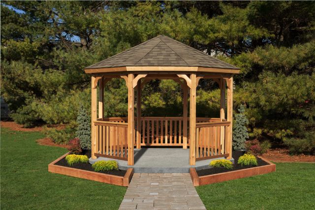 הגזיבו הקלאסי אמנם עשוי מעץ, אבל היום ניתן למצוא אותם ממגוון חומרים כמו אלומיניום או ויניל. הגג שלהם בד"כ עשוי מעץ.